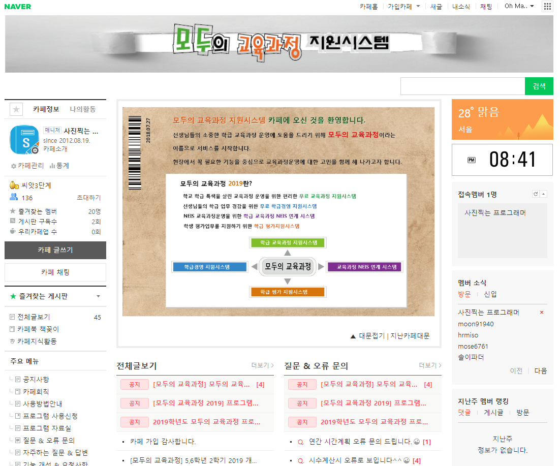 가. 공식카페에서 "2019학년도 2학기 교과지도계획"파일을 다운로드 합니다.