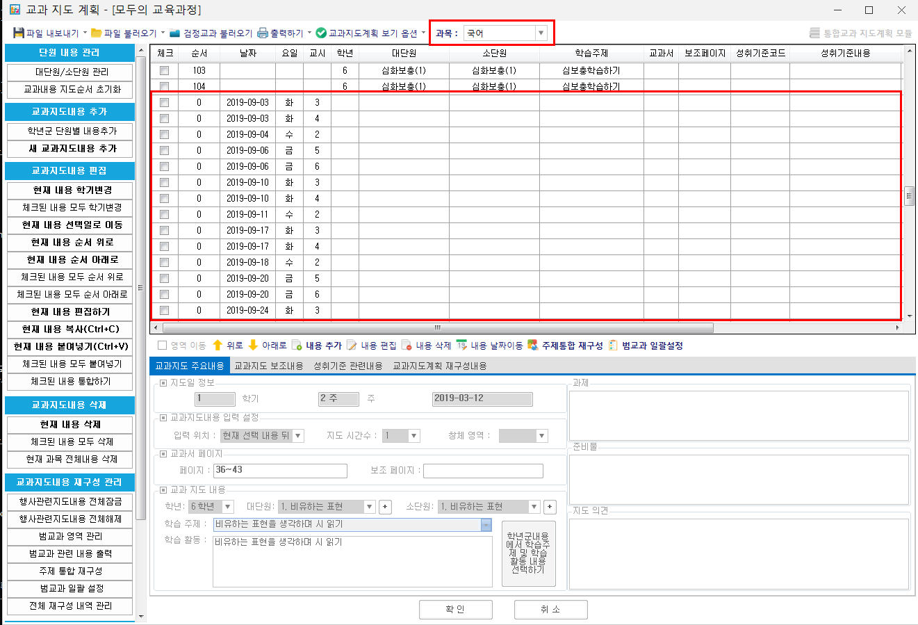 검정교과는 출판사 정보까지 잘 확인하신 다음 불러오시면 됩니다.