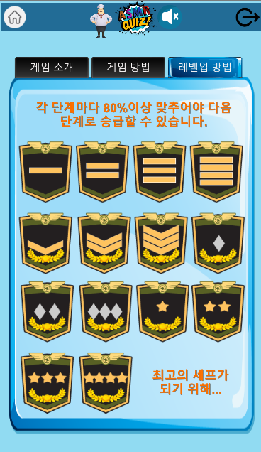 간 단계에서 80%이상 되어야 통과가 되며, 레벨이 한 단계 상승합니다.