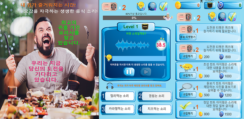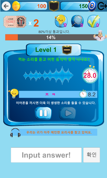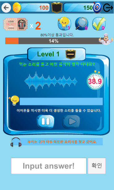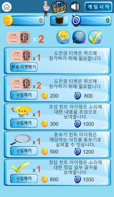 힌트아이템 종류는 초성 힌트, 이미지 힌트, 정답 일부 가리기 힌트가 있습니다.
