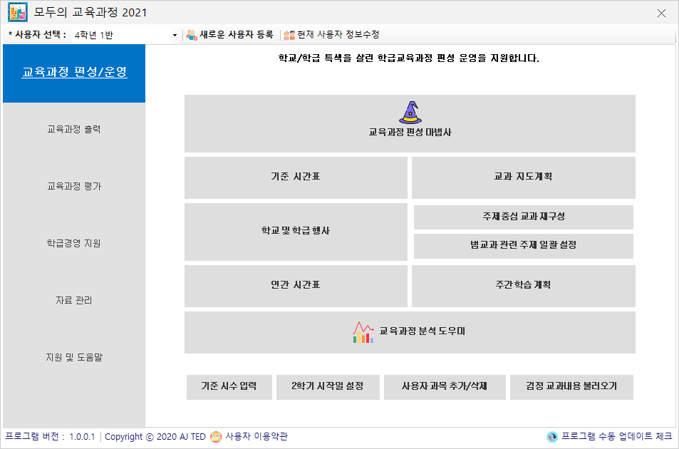 초등학교 학교/학급 교육과정 편성운영프로그램입니다.