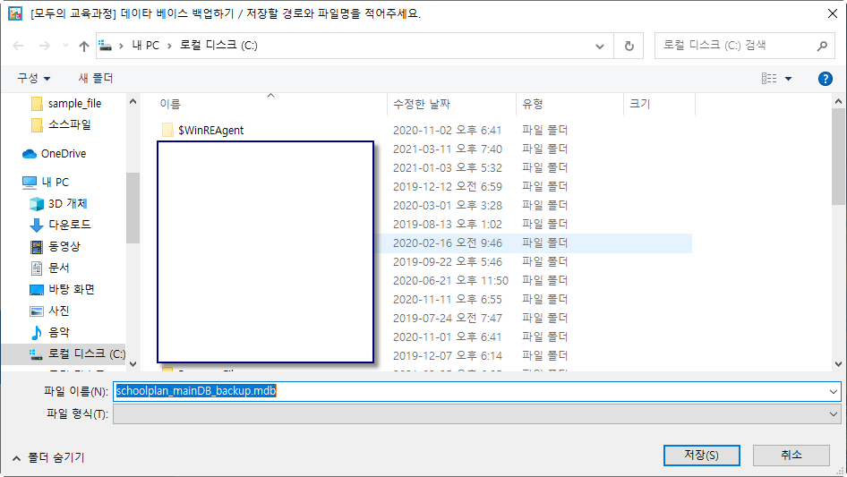 데이타베이스를 별도 저장하는 과정이 필요한 경우가 있습니다.