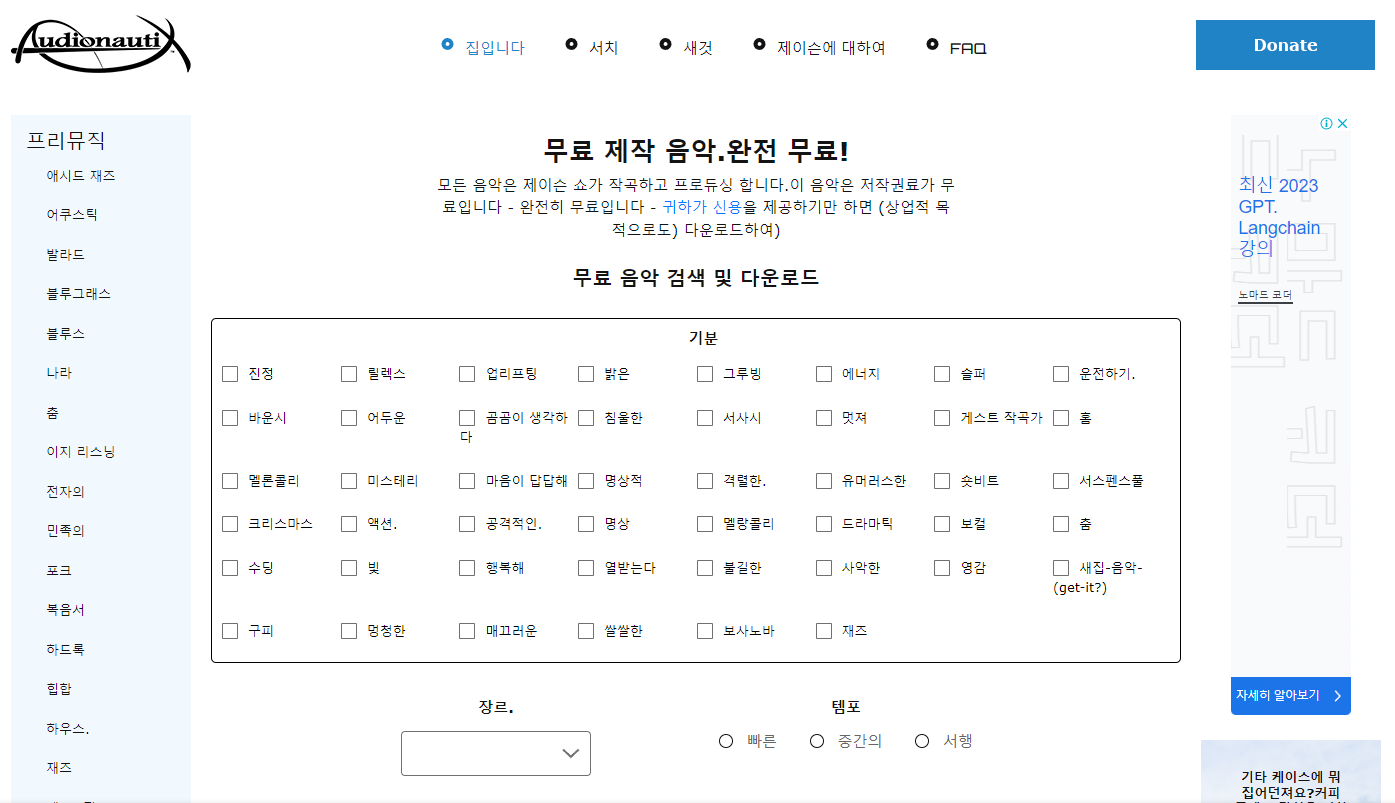 저작권 걱정없는 완전 무료 배경음악 사이트를 소개할까 합니다.