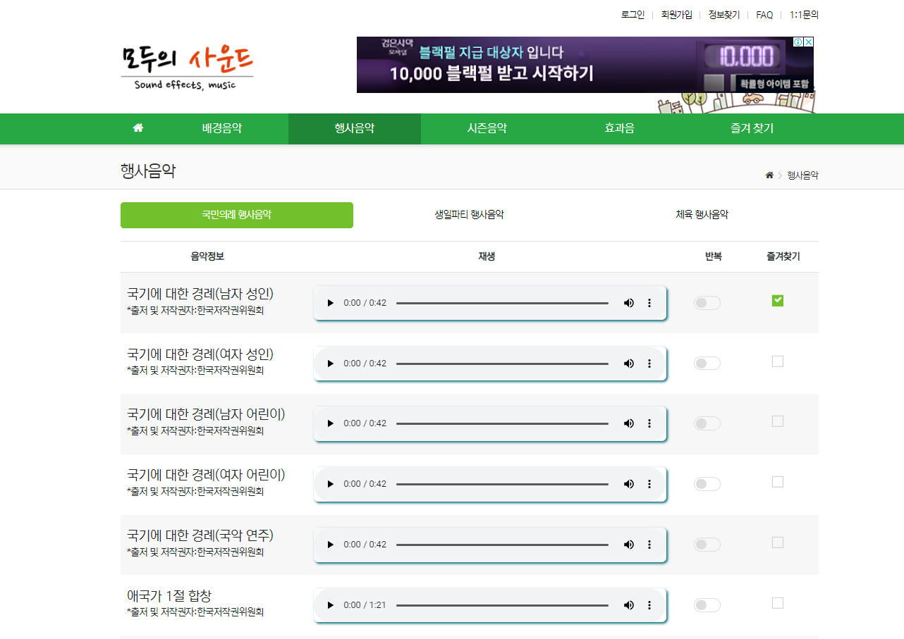 이번에 소개해 드릴 것은 배경음악, 행사음악, 시즌음악, 효과음을 회원가입없이도