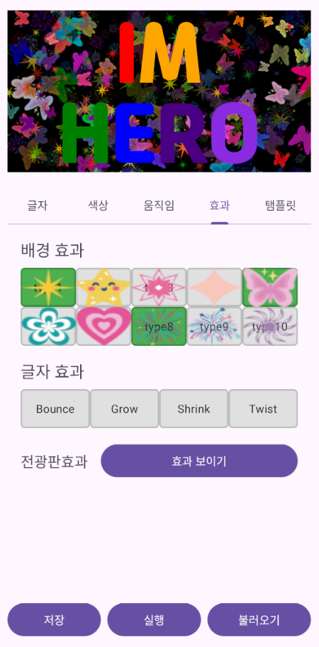 손쉽게 텍스트를 입력하고, 다양한 폰트, 색상, 배경 효과를 사용해 나만의 멋진 전광판을 디자인하세요.