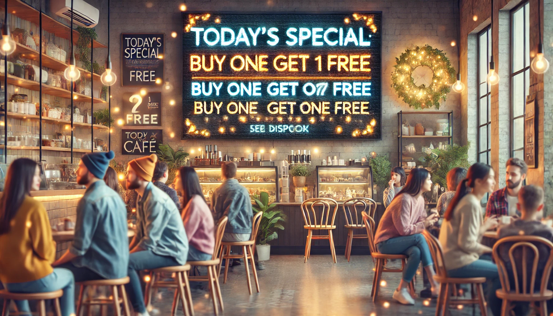 3. 프로모션 및 광고: 상점, 카페, 전시회 등에서 프로모션 메시지나 광고를 효과적으로 홍보하세요.