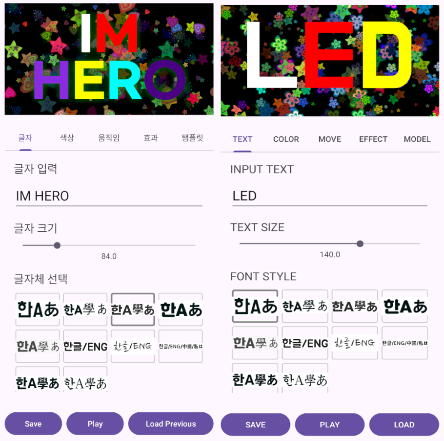 1. 다양한 폰트와 색상: 수십 가지의 폰트와 색상 옵션을 제공하여, 여러분의 스타일에 맞는 전광판을 디자인할 수 있습니다.
