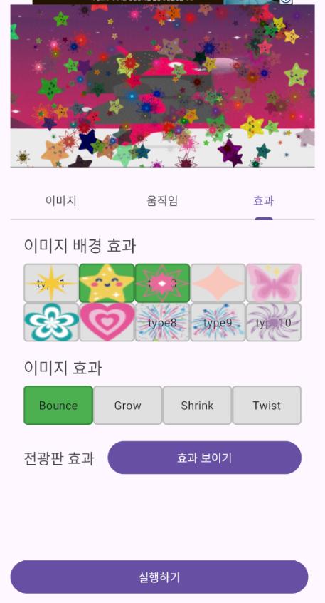 2. 움직임 효과, 깜빡임 효과, 배경효과 등을 줄 수 있습니다.
