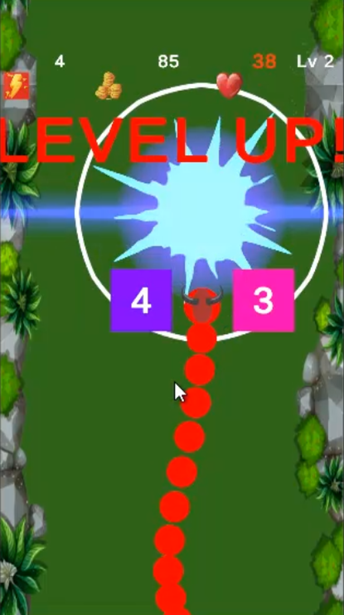 - 숫자만큼 뱀의 꼬리가 길어집니다. (성장!)